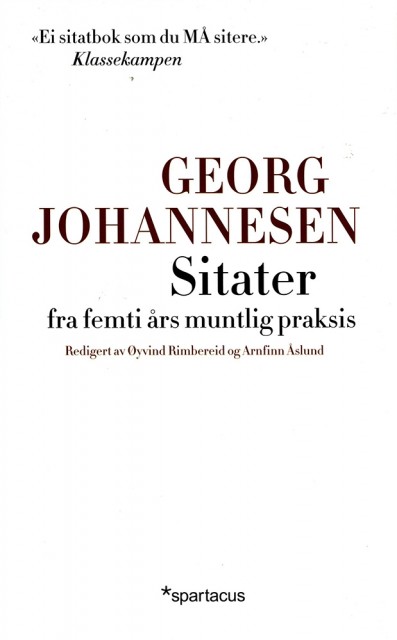 Forfatteren Georg Johannesen (1931–2005) var en av Norges fremste retorikk-kjennere og kanskje den mest taleføre nordmann gjennom tidene. I denne boka er noen av de mest aktuelle og tankevekkende utsagn fra Georg Johannesen samlet mellom to permer. Redaktørene har gått gjennom så godt som samtlige intervjuer og presseopptredener med Georg Johannesen gjennom fem tiår. Med få unntak er disse ikke tidligere publisert i bokform, og en god del har aldri vært publisert i det hele tatt. Utvalget er gjort med blikk for den stimulerende konfrontasjonen og den slående formuleringskunsten. Boken kan både fungere som en retorisk eksempelsamling og som et oppkomme av kritiske perspektiver på norsk kultur og politikk.