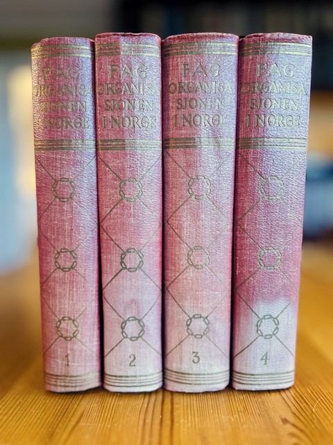 Første bind av Fagorganisasjonen i Norge kom ut i 1927. Det var et avsluttet bind, som omfattet tida fra de første fagforeninger og deres forløpere fram til Arbeidernes faglige Landsorganisasjons jubileum i 1924. Restbeholdningen av dette verket ble ødelagt av Nasjonal Samling under okkupasjonen. Denne utvidede firebindsutgaven utkom i forbindelse med LOs 50-årsjubileum i 1949. Første bind handler om fagorganisasjonens utvikling fra de første foreninger i 1870-åra til utgangen av 1920. Det er i alt vesentlig bygd på den tidligere utgaven fra 1927. Andre bind omfatter krise- og kampåra fra 1921 til 1931, og tredje bind skildrer den store organisasjonsutviklingen fra 1932 til utgangen av 1939. Fjerde bind handler om fagorganisasjonen under krigs- og okkupasjonsåra. De tre første bindene er skrevet av Gunnar Ousland, fjerde bind av Alfred Skar.