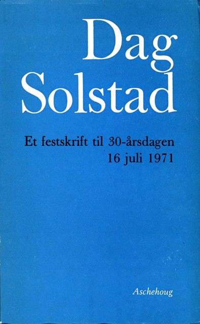 I dette festskriftet, utgitt til forfatter Dag Solstads 30-årsdag medvirker blant andre Jan Erik Vold, Olav Angell, Liv Køltzow, Arild Nyquist, Helge Rykkja, Kjell Hegglund, Espen Haavardsholm og Georg Johannesen. I tillegg inneholder boka et utvalg av Solstads tidlige essays og anmeldelser, samt et utvalg av forfatterens egne skjønnlitterære tekster. Dag Solstad (1941-) debuterte med novellesamlingen Spiraler i 1965 og har siden vært en av landets mest markante forfattere.