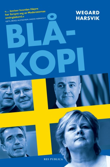 Etter katastrofevalget i 2009, var det klart at Høyre måtte legge om sin politiske strategi. Blåkopi viser hvordan norske Høyre punkt for punkt har kopiert svenske Moderaterna, både i enkeltutspill og språk. Kopieringen er slående på områder som arbeidsliv, skole, helse og velferd. Strategien er den samme som ble brukt av George W. Bush i USA, Fogh Rasmussen i Danmark – og Reinfeldt og Moderaterna i Sverige fram mot 2006. De forsto alle at velferdsstaten var for populær til at de kunne angripe den. De omfavnet derfor velferden i en ny «konservatisme med omsorg». Men Blåkopi viser realitetene bak Moderaternas språk: «friskoler» er eid av multinasjonale konsern med høye profittkrav. «Det skal lønne seg å jobbe» betyr kutt i arbeidsledighetspenger. «Å slippe alle gode krefter til» i eldreomsorgen var en storstilt privatisering som førte til skandale. Millioner av skattekroner endte i kassen til utenlandske investorer i skatteparadis. Wegard Harsvik (f. 1967) leder for samfunnskontakt og strategi i LO. Han har lang politisk erfaring, blant annet som statssekretær, politisk rådgiver og stortingsrepresentant.